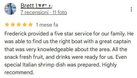 We are NOT a boat charter website. These websites are owned by big corporations where anyone can post a boat to charter, sometimes without having the right insurance or permissions to do so, then you pay them a commission on top for their service, which usually is impersonal and money-driven. Instead, Boat Rent Italy is a network of family owned and run businesses where you don't have a middle-man offering you a charter but instead you are dealing and paying for your service directly to the Boat owner. Your booking process and customer support is offered directly by our Founder & Director, Frederick (See section "About us" above), this is how personal our customer service and care is when dealing with us :) .